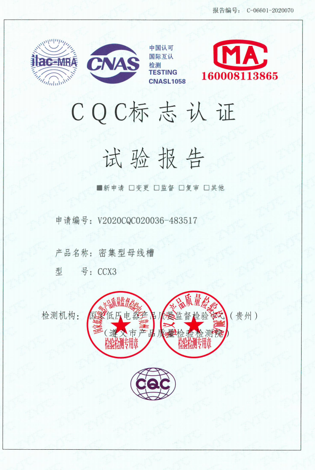 CCX3密集型母線槽國家強制性產(chǎn)品認證試驗報告