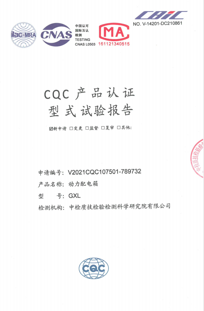 GXL動力配電箱產(chǎn)品認證型式試驗報告